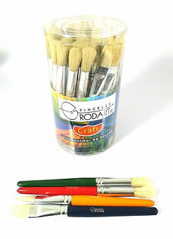 pinceles Jumbo marca RODÍN . con un contenido de 36 piezas, cuenta con 18 piezas respondas y 18 piezas en planosPinceles de Manguito de madera y cerdas de pelo natura